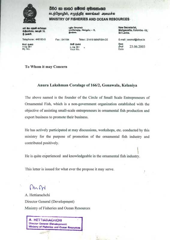 දේශයේත් ජාතියේත් සංවර්ධනයට විසිතුරු වූ සුරතල් මත්ස්ය කර්මාන්තයෙන් පිටුබලයක්....