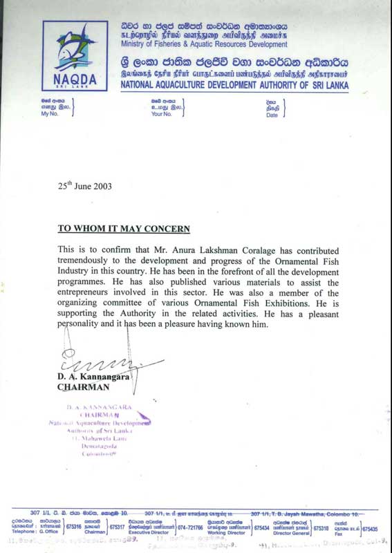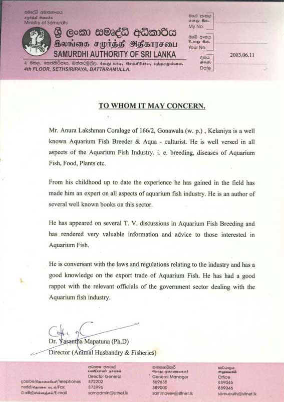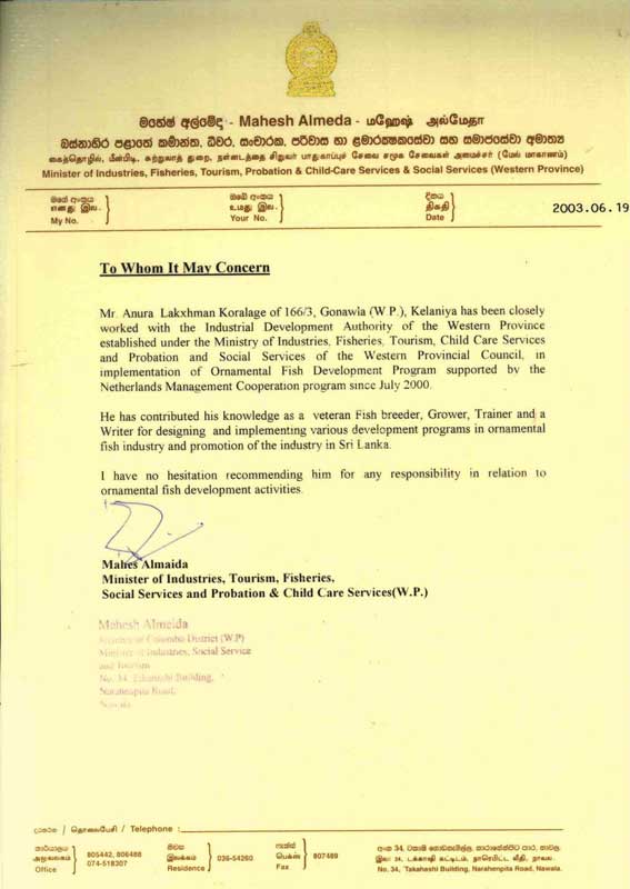 රජයේ සහතික ලත් ප්රවීණ උපදේශකවරයෙකු වූද, "ඝර්ම කලාපීය විසිතුරු මත්ස්ය්ය අභිජනනය සහ පුනරාගමනය" නමැති මෙරට ප්රථම සිංහල ග්රන්ථයේ කතුවරයා වූද, දශක ගණනාවක අත්දැකීම් බහුල "අනුර ලක්ෂමන් කෝරළගේ, ගේ" නවීන ලෝකයට දැනුම බෙදා දීමේ අන්තර්ජාල ප්රවේශයයි... -